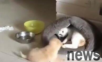 Regardless of the cat's objections, the golden retriever just wanted to sleep inside. The golden retriever tried hard to get into the cat's nest. When the cat saw this stupid golden retriever, it seemed that it couldn't be persuaded with its mouth. The cat had to use violence to solve the problem. The cat really couldn't stand the little golden retriever. , he kicked the little golden retriever out of his nest with his hind legs. However, the golden retriever didn't seem to accept the lesson very much and continued to drill. The cat kicked him again. The golden retriever tried many times, but in the end he was kicked out by the cat. The scavenger saw how pitiful the golden retriever was, so he sent it to the golden retriever's nest. In fact, golden retrievers just want to play with cats, but cats themselves don’t like playing with golden retrievers.