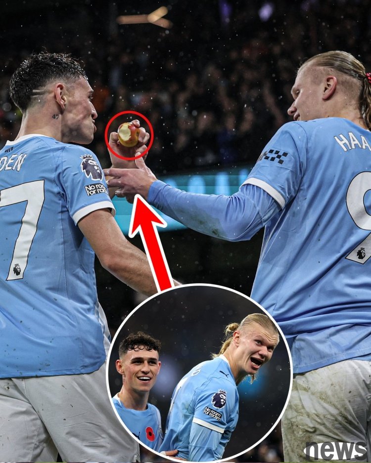 According to ESPN reports, after Doku scored in the game, Harland and Foden celebrated the goal by eating apples.
