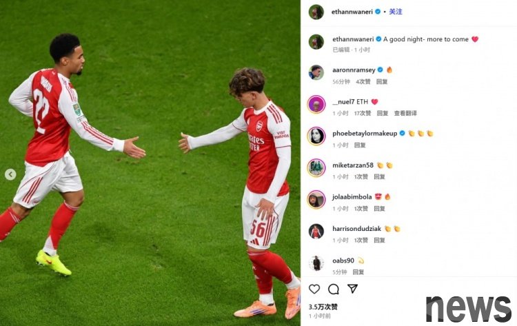 First goal of the season! 18-year-old Nwaneri celebrates on social media: A great night, looking forward to more