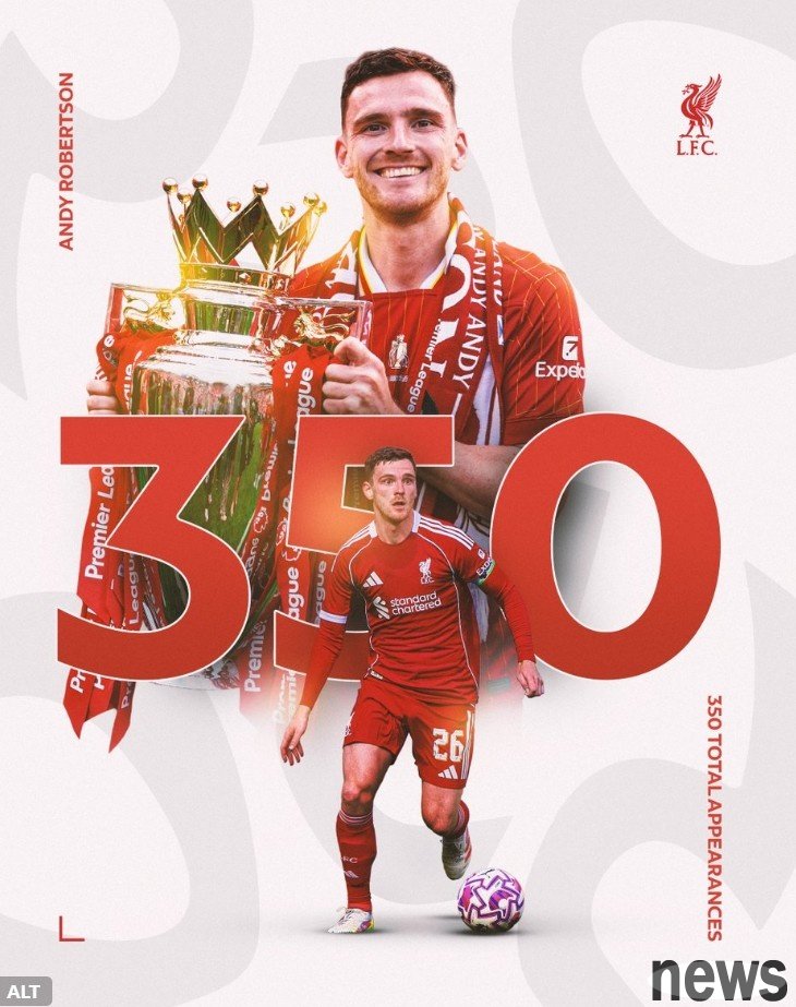 Robertson reached the milestone of 350 appearances in his Liverpool career, contributing 12 goals and 68 assists.